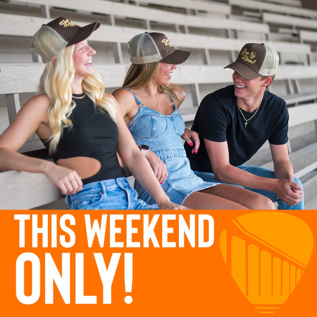 Feel Good Fridays ’23 Tees with Sponsor Laudick’s Jewelry • Yee Haw! Grandstand trucker hat • Party Bus Giveaway promo with coozie and VWLive shirt • VWLive hat with promo pins