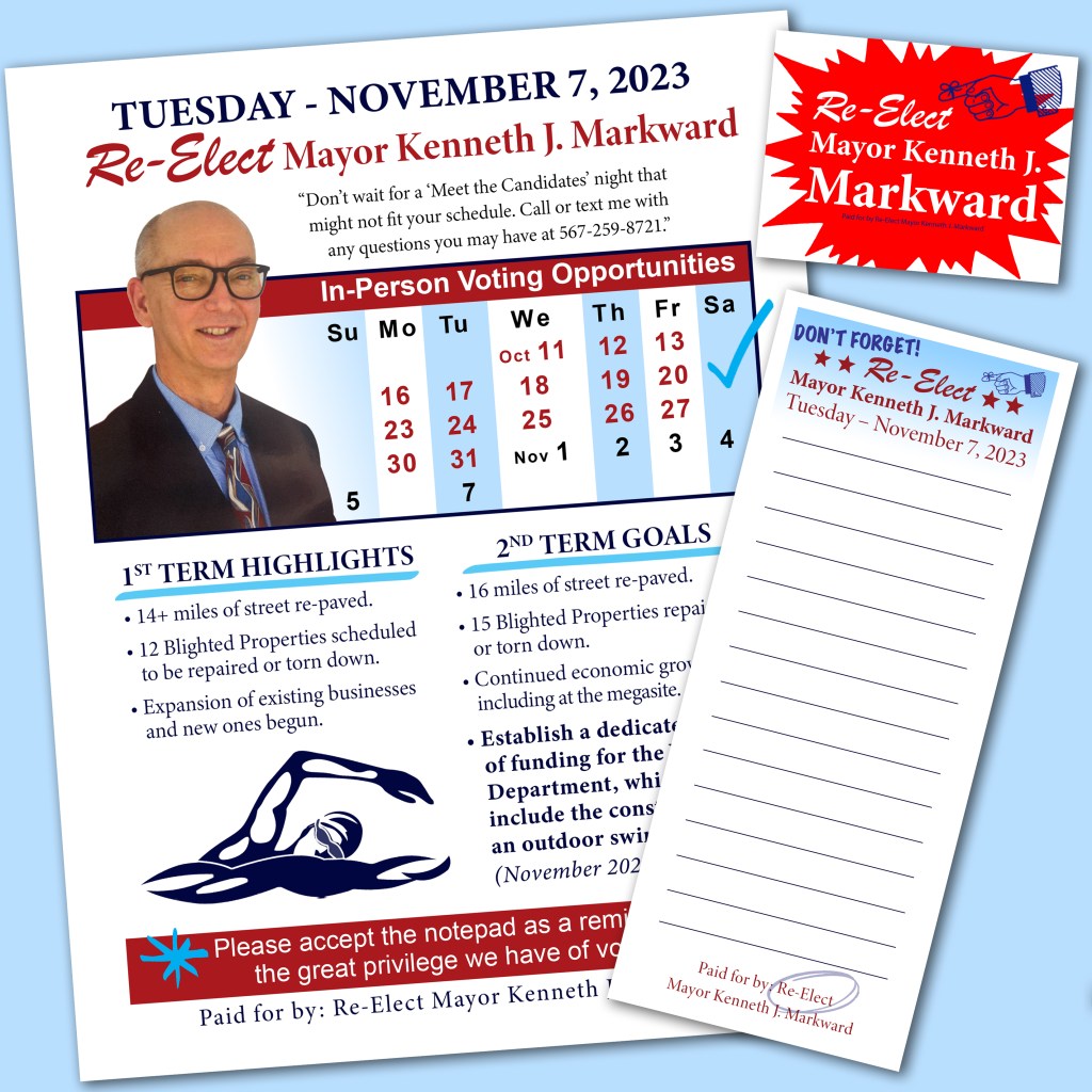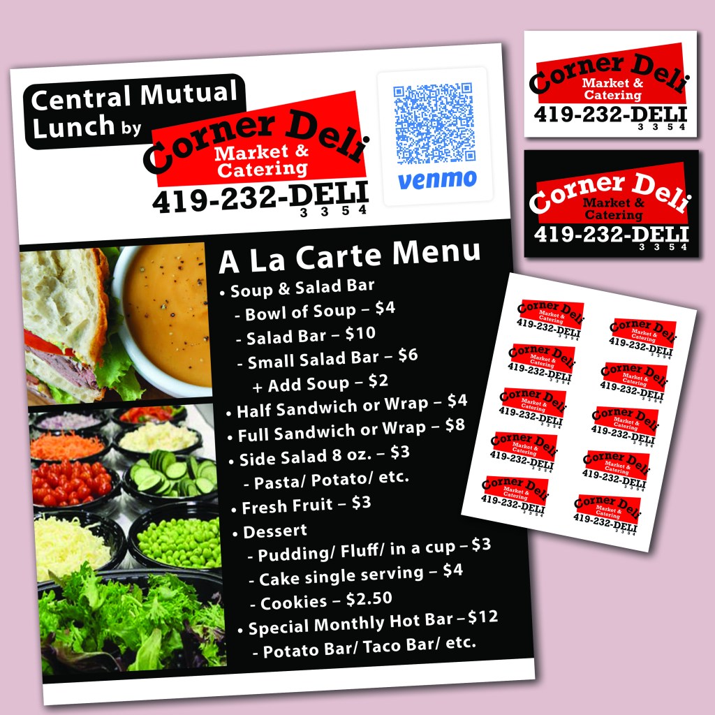 VWLive 15 Years of Fame Gala logo, pin, coasters • Mayor Markward campaign flyer, sign, notepad • Corner Deli logo, menu, decals • Five Oaks Farms logo, ad, site • St. Mark’s Church logo, poster, banner