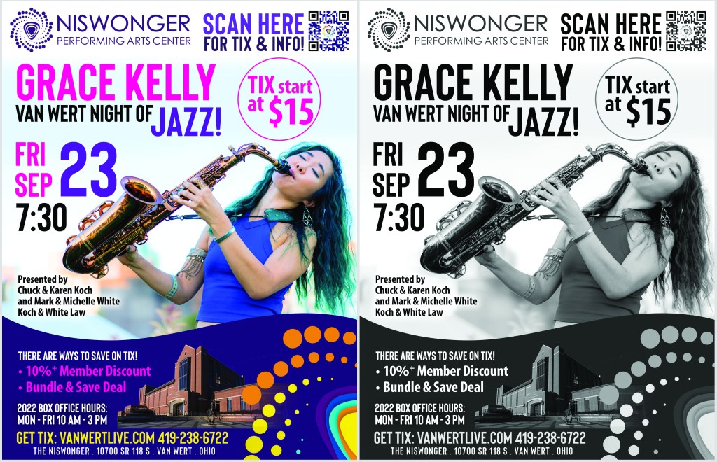 Niswonger banners • Color / B&W flyers for Grace Kelly • Newspaper footer ads • Newspaper roster ad
